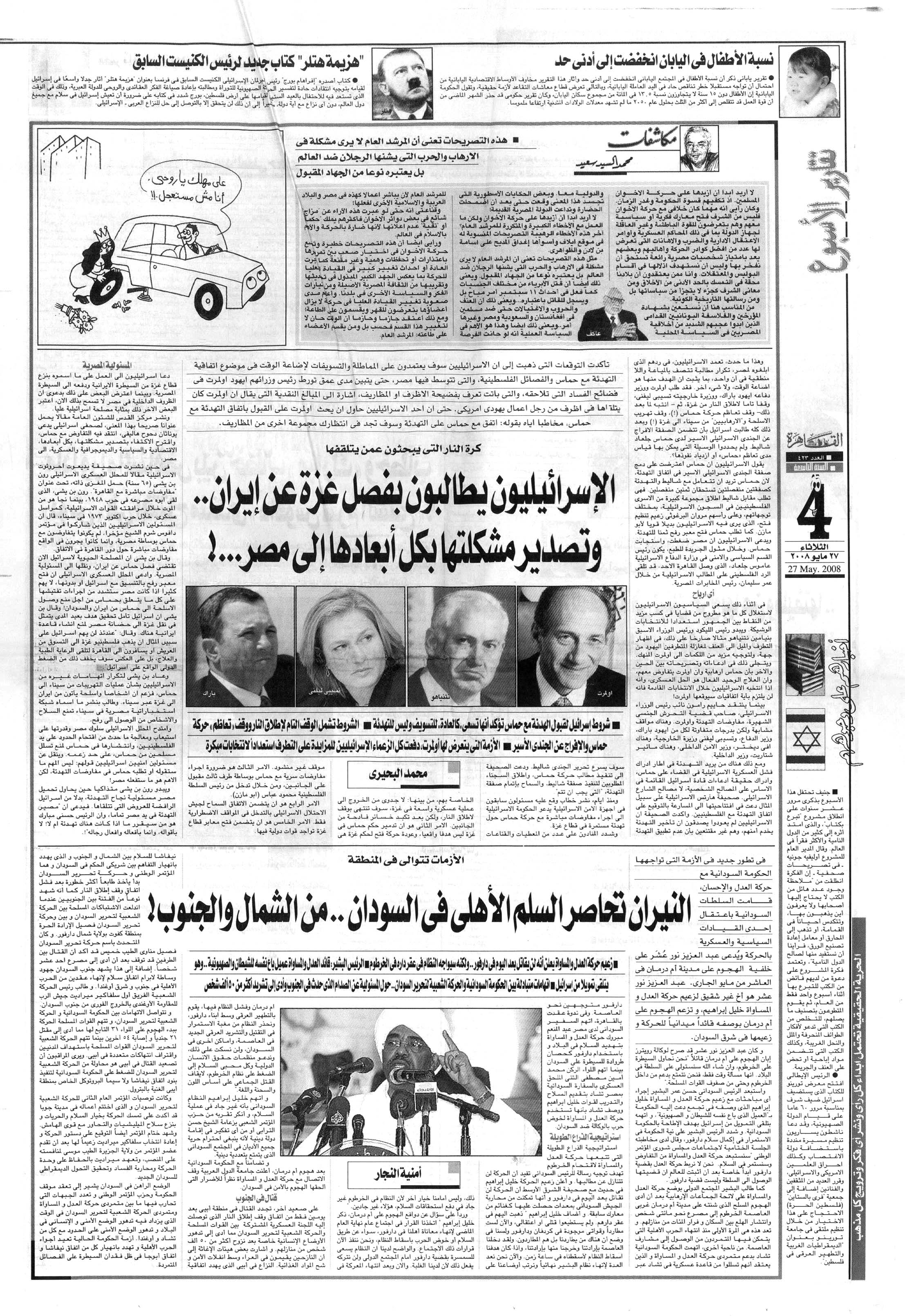 النيران تحاصر السلم الأهلى فى السودان 27 Tuesday May 2008 Posted by Omneya El Naggar in Arabic Articles ≈ Leave a comment TagsSudan جريدة القاهرة النيران تحاصر السلم الأهلى فى السودان